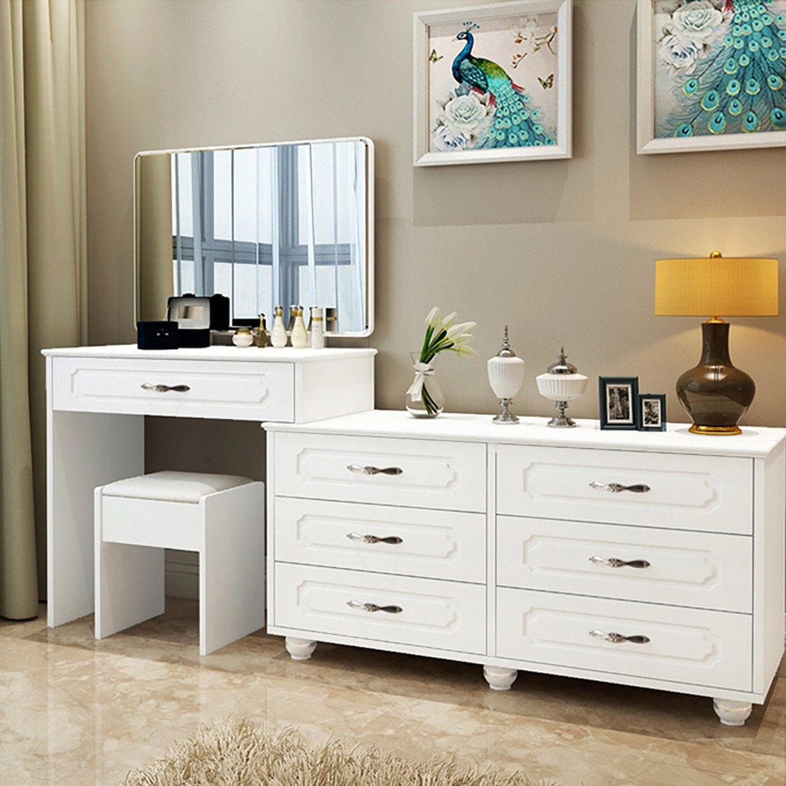 每个女生最爱的梳妆台,就跟化妆护肤品一样。欧式梳妆台总是给人一种典雅高贵的感觉,再加上其以白色、米色为主调,配上自然实木材质,显得更加天然美观