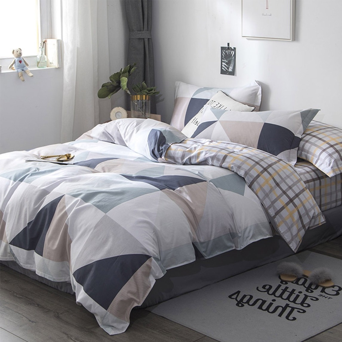 北欧风全棉四件套,柔和温暖如同白云,气息清新自然,拥有良好的吸湿排汗功能,可以机洗也可以手洗。新一代印染技术,色牢度高不褪色,鲜艳美观。