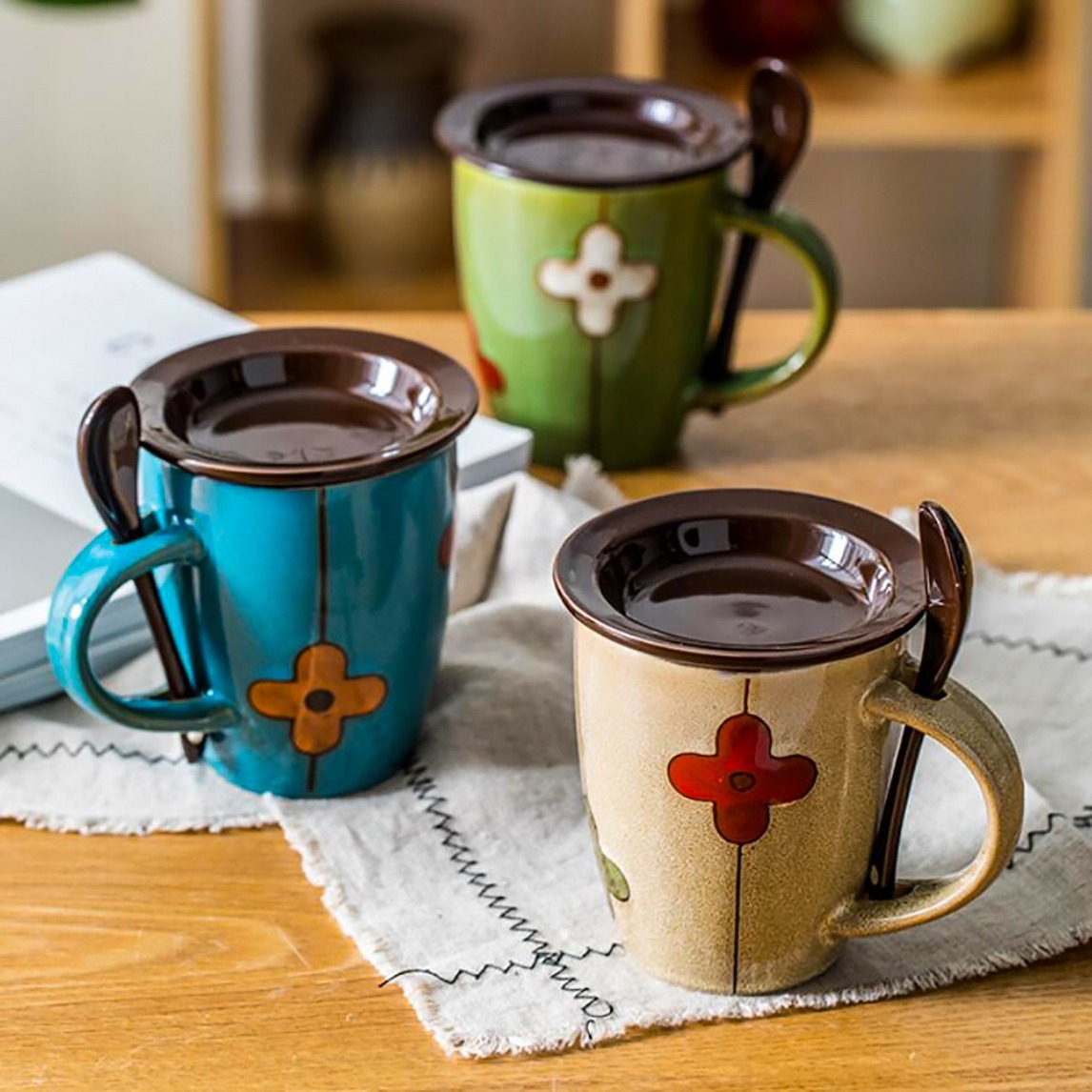 复古古朴的风格,创意手绘陶瓷杯,手工绘制的图案,厚实的杯璧,光滑的杯口,隔热厚实,花色很丰富,特别有个性。