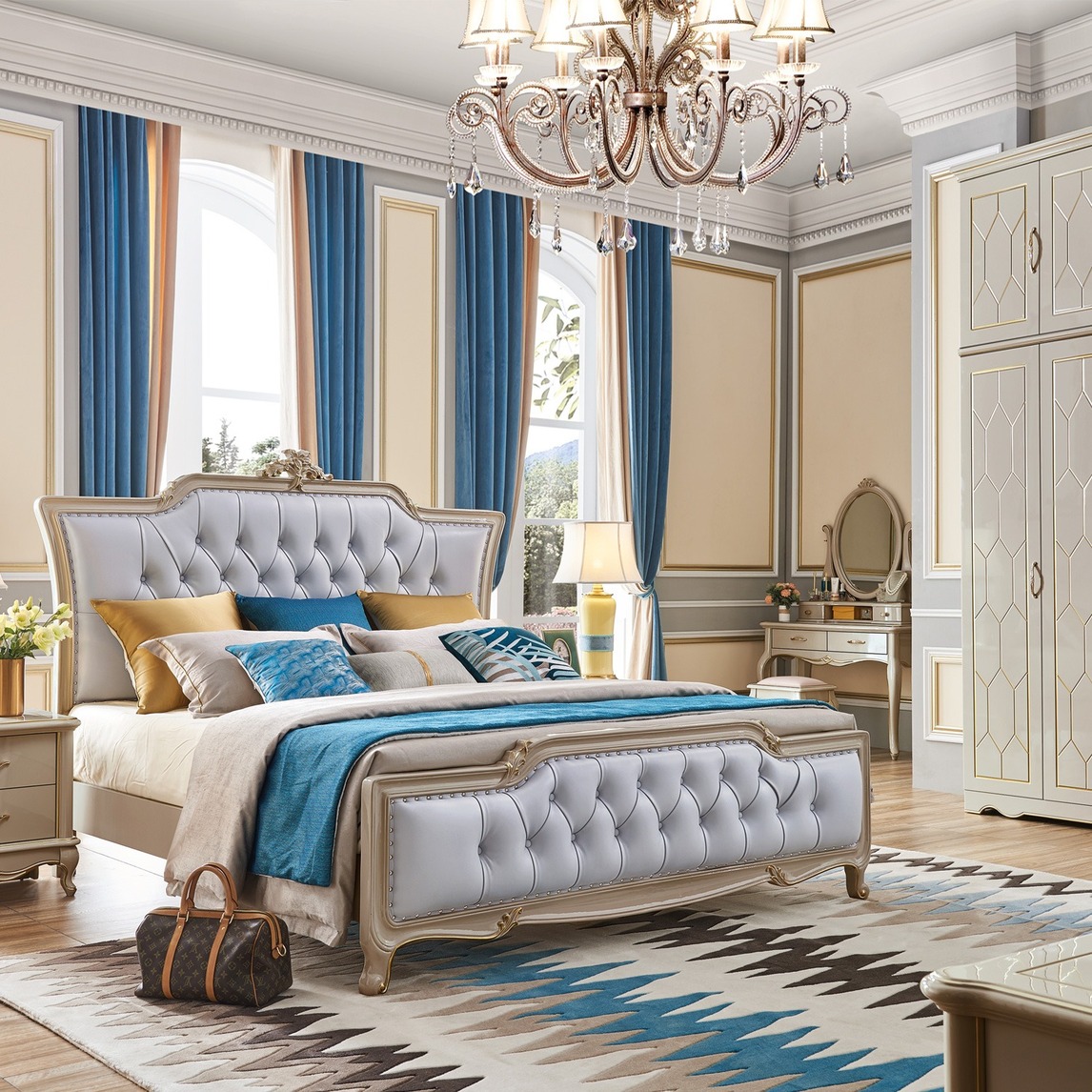 床头软包采用进口皮革,纹理自然亲肤透气,精美雕花,坚固耐用不变形;储物床头柜手工精致五金拉手,防撞边角,边缘经打磨圆滑,避免碰撞受伤;实木储物妆台,雕花描边,简约精致,科学分区储物更添惬意家居生活;柔...展开