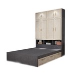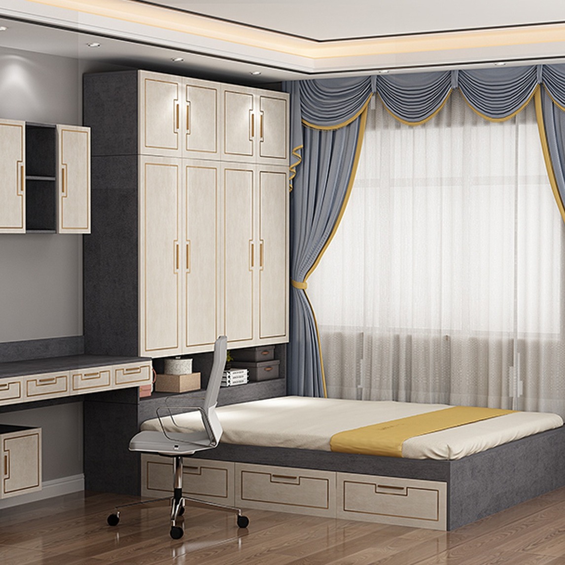 衣柜加上储物柜综合体,用在卧室里可以带来大容量空间,在卧室分类收纳,就是这么简单。衣柜床使用环保高密度E1板材制造,耐划耐高温。