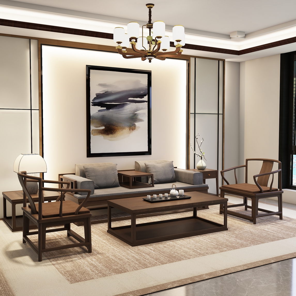 新中式客厅-新中式家具沙发茶几