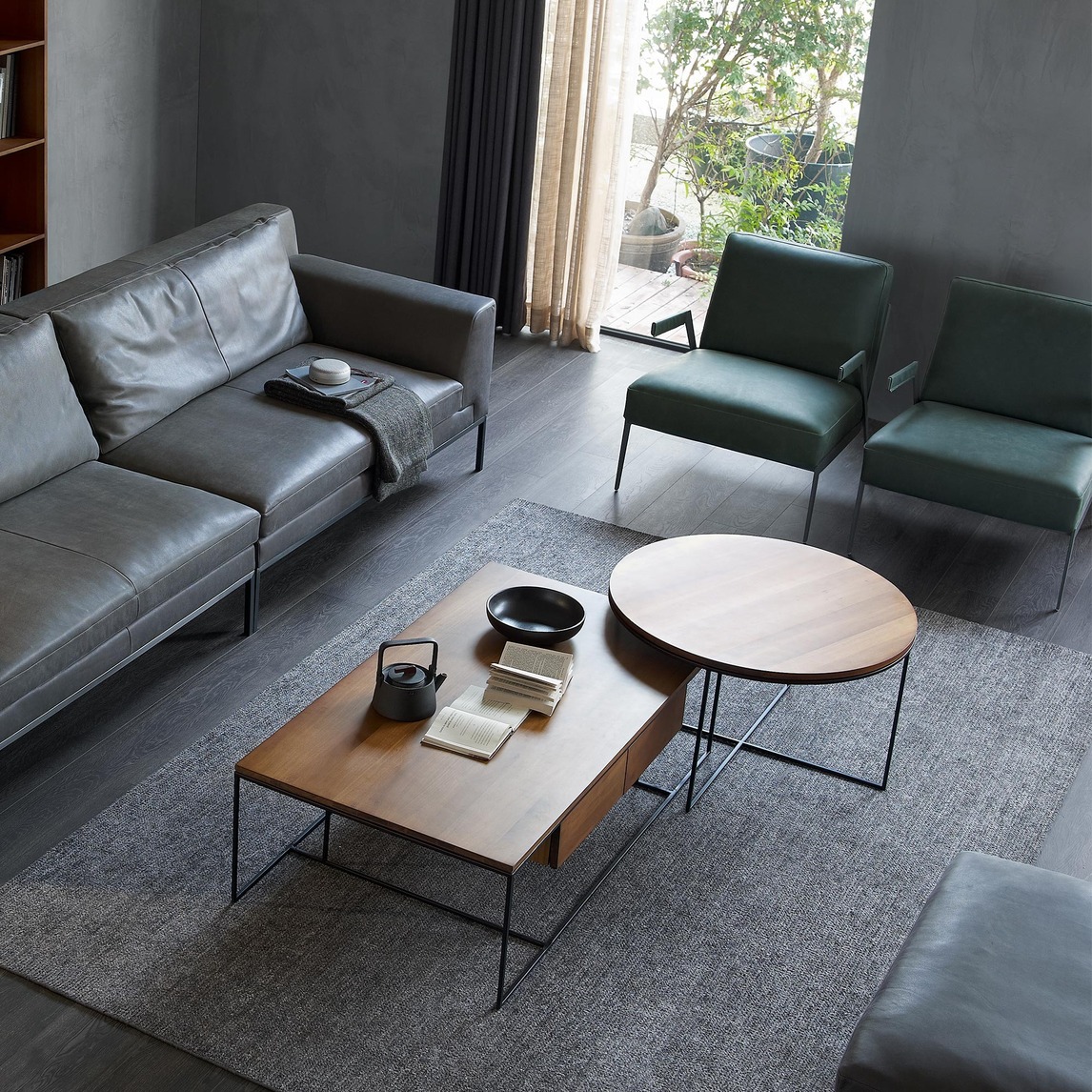 茶几为不过时的圆形结构,简约质朴,360º防撞圆角设计,有效避免日常各种磕碰。组合叠放,高低错落设计增强家居层次感。