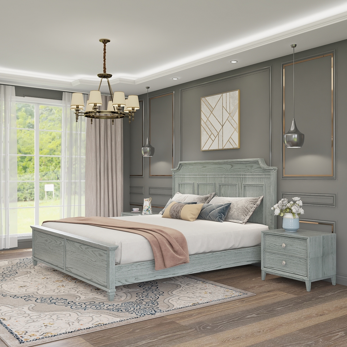 轻奢美式的装修风格,搭配莫兰迪色系的实木床,整体没有太多的雕花,既不繁复又保留了最初的美式格调,让你感受高雅的同时,享受舒适的睡眠。