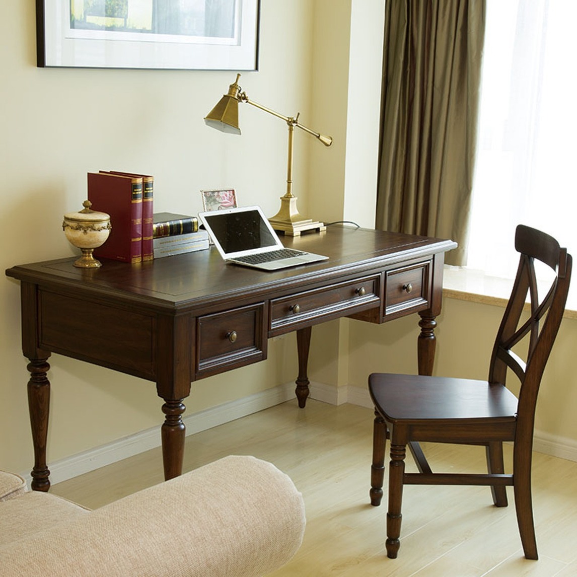 一个外观上简约而又不失创造力的书桌,灵感来源于女性高跟鞋设计,美观的同时打造稳定的基脚。实木葫芦型柱脚设计,更为美式风增添出一份独有的气质品味。