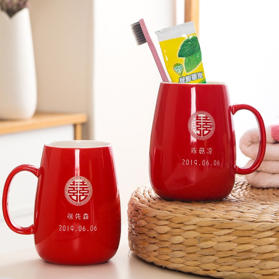 这款情侣漱口杯上可是绘制了动人的情话,明显就是甜蜜的气息嘛。而且人家也丝毫不隐藏动人的喜庆大红色系,只不过是杯面整了一圈,全部都藏在手把上啦。