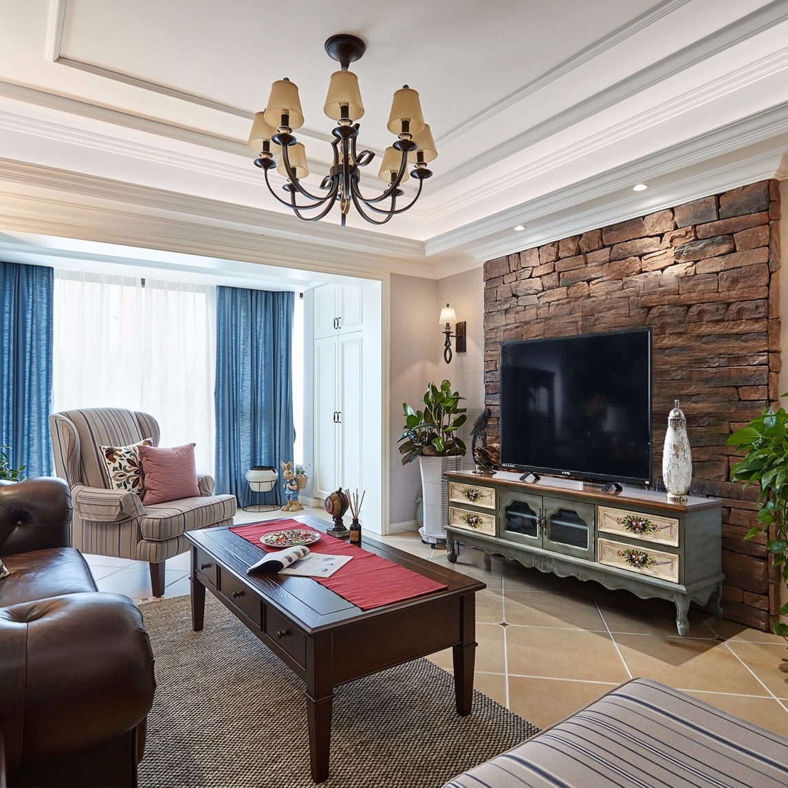 本案以美式田园风为指导,融入古典美式元素,将休闲而优雅的家具语言演绎到位,为久经都市纷扰的现代人打造了一方悠闲生活的空间。从装修细节,到家具的搭配,都力求表现出丰盈的自然质感与浪漫情韵。