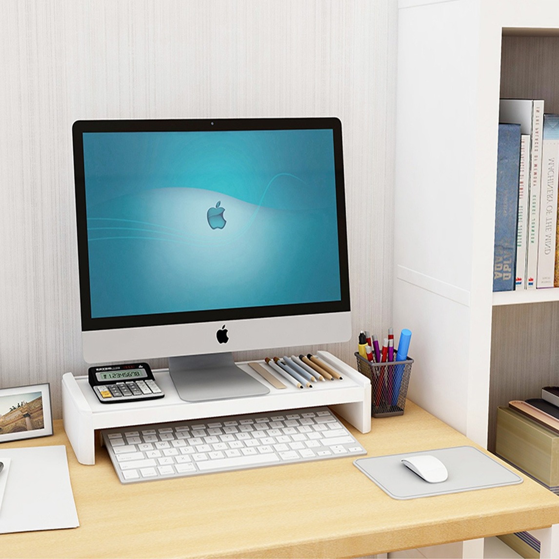 新版桌面置物架,预留的放电脑位置,置物架有空间给电脑鼠标的位置,放在桌面收纳柜,看电脑办公不会累,脖子也能得到放松。
