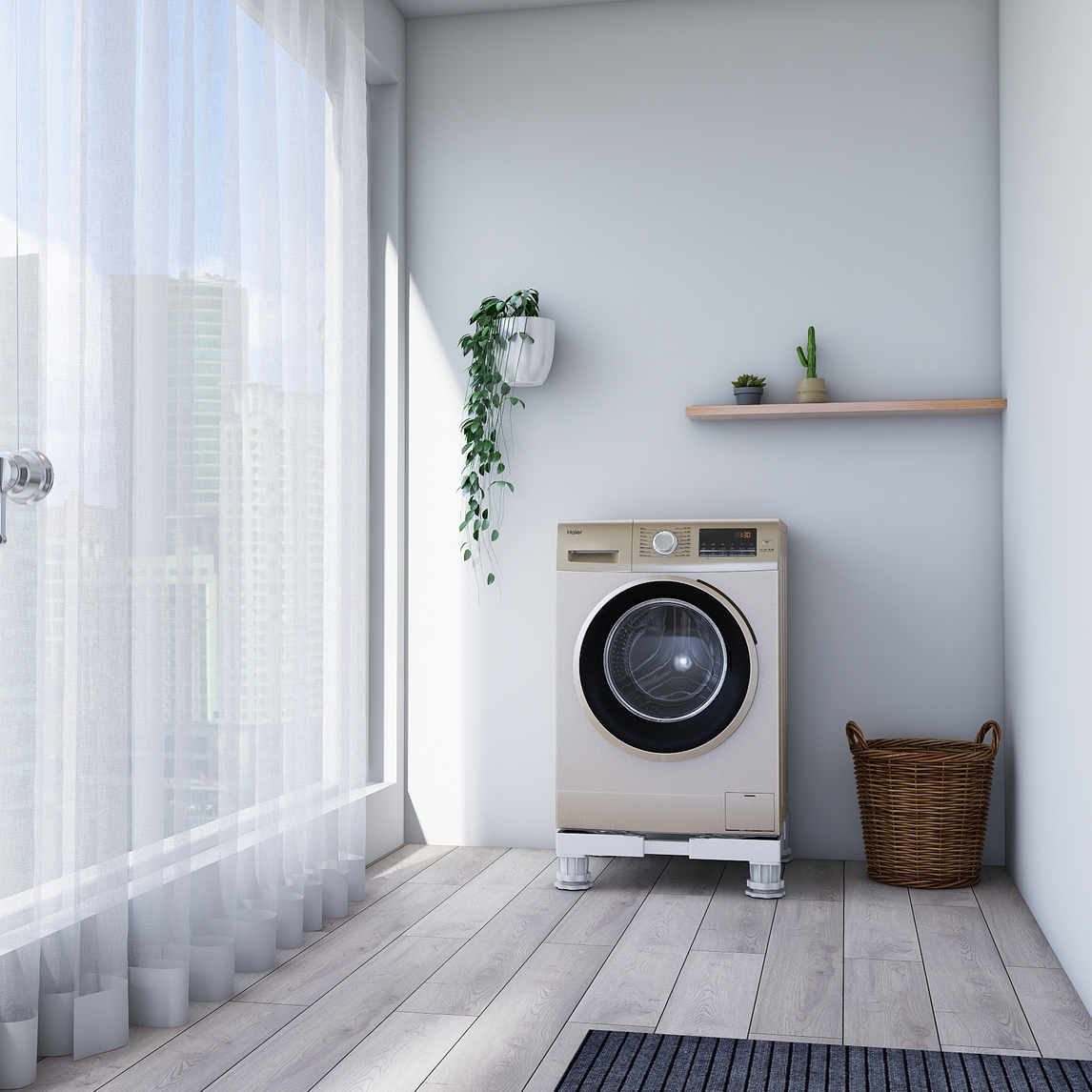 现代风的阳台,布置得简单整洁,集休闲和实用于一体,简单的装饰显得清新又有格调。洗衣机放在阳台,配上一个脚架更好打扫卫生。