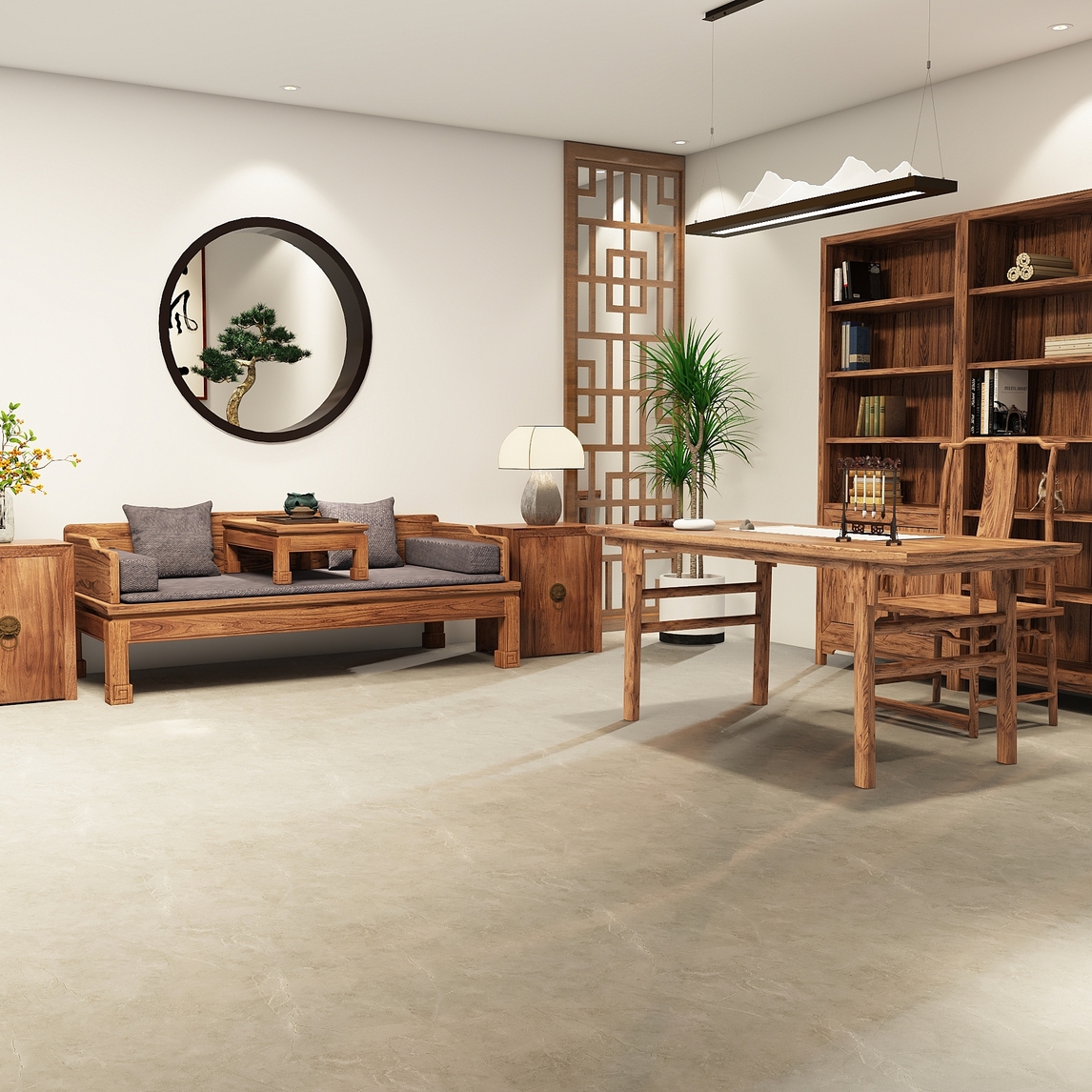 借用中国园林布局,分隔较大空间提高利用率,同时视觉上又不会显得局促,使空间有很好的延伸感,搭配实木家具使得整个氛围更具有中国传统园林布局的风格。