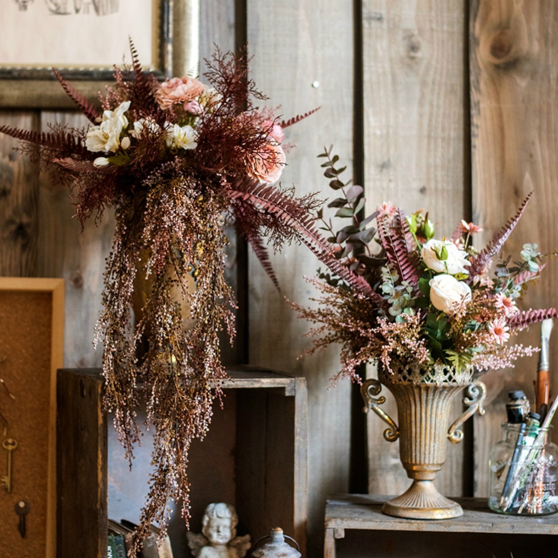 韩式花束,颜色丰富多彩,集合了秋色所有的美好于一身,给你浓郁的秋意浓的韵味,搭配古典主义的高脚杯花器,和谐自然,真挚美好。