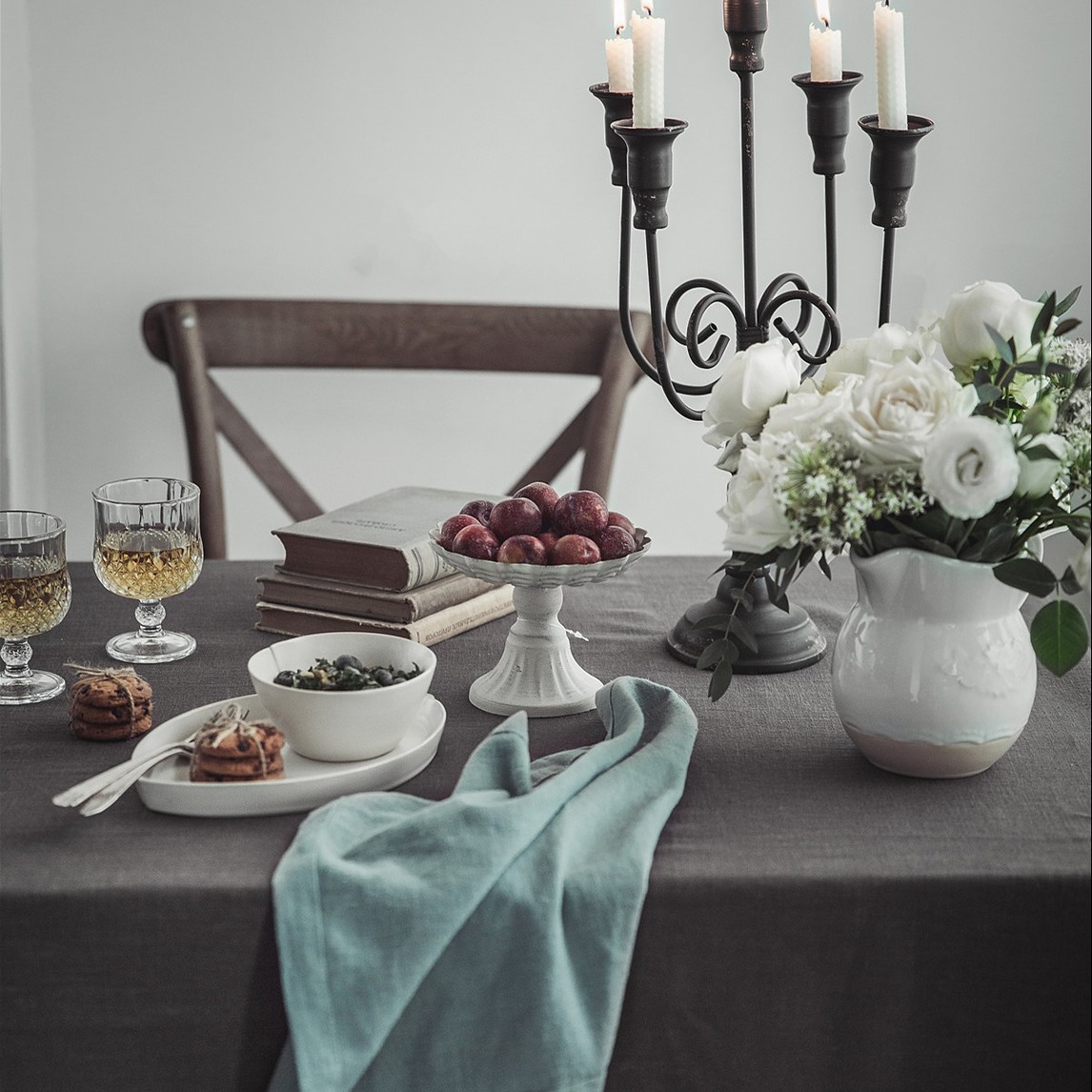 亚麻材质的桌布,在文艺范家装中是最常见的,通常是纯色的居多,麻质自带的皱褶就是最好的纹理,搭配木质家具,增强自然朴素感和家庭温馨的氛围~