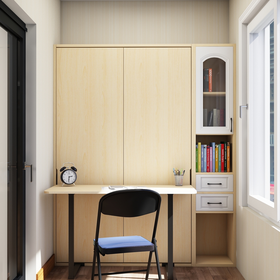 在阳光下感受自然光的阅读,充分利用阳台的空间,打造出一个安静的阅读角落,大容量的书柜,可以放下你喜欢的任何书籍,书桌与床的折叠式设计,在累的时候可以随时休息,也可以当坐客房使用。