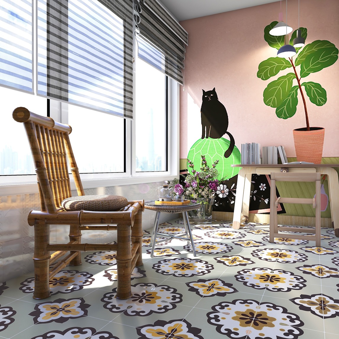 空间不大的阳台,却体现了爷孙同堂的景象。小儿书桌前学习,爷爷竹椅上打盹,一壶茶可以坐一下午,满铺的花砖是时代的印证,粉色的壁纸是儿孙的喜爱。