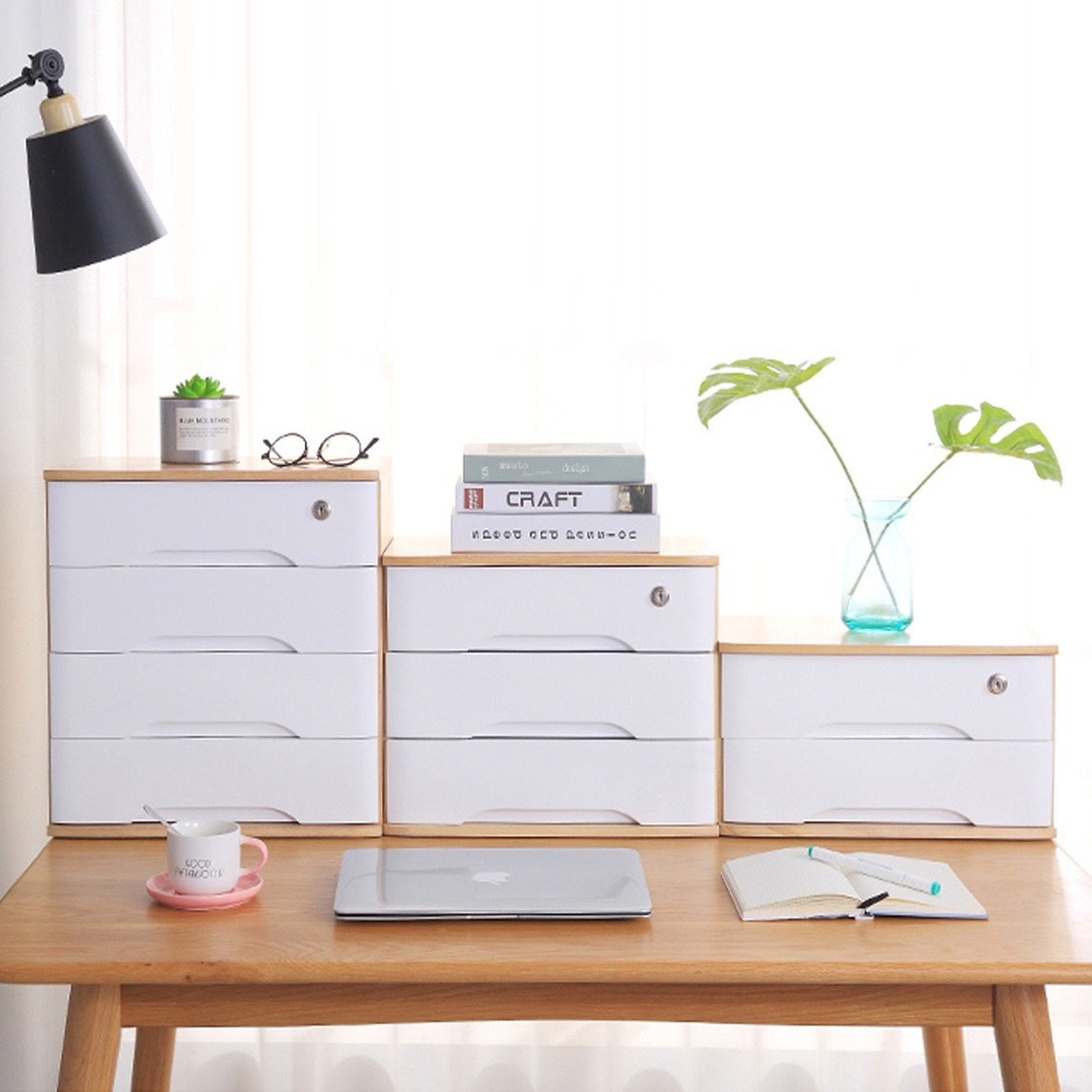 做工非常精致,带锁抽屉收纳,有了自己秘密储物地方。在收纳能力方面也比较全面,基本能满足收纳各种物品,多层收纳个小抽屉,可放一些小物品。