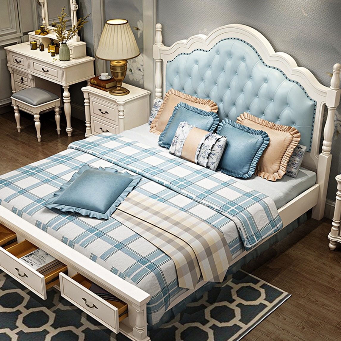 我一直想买一张全实木的床,但是又不想靠着的时候太硬,就像床头柔靠包的,但是布艺的又不会打理。所以我就看到这款欧式的实木床,手感真的不错。