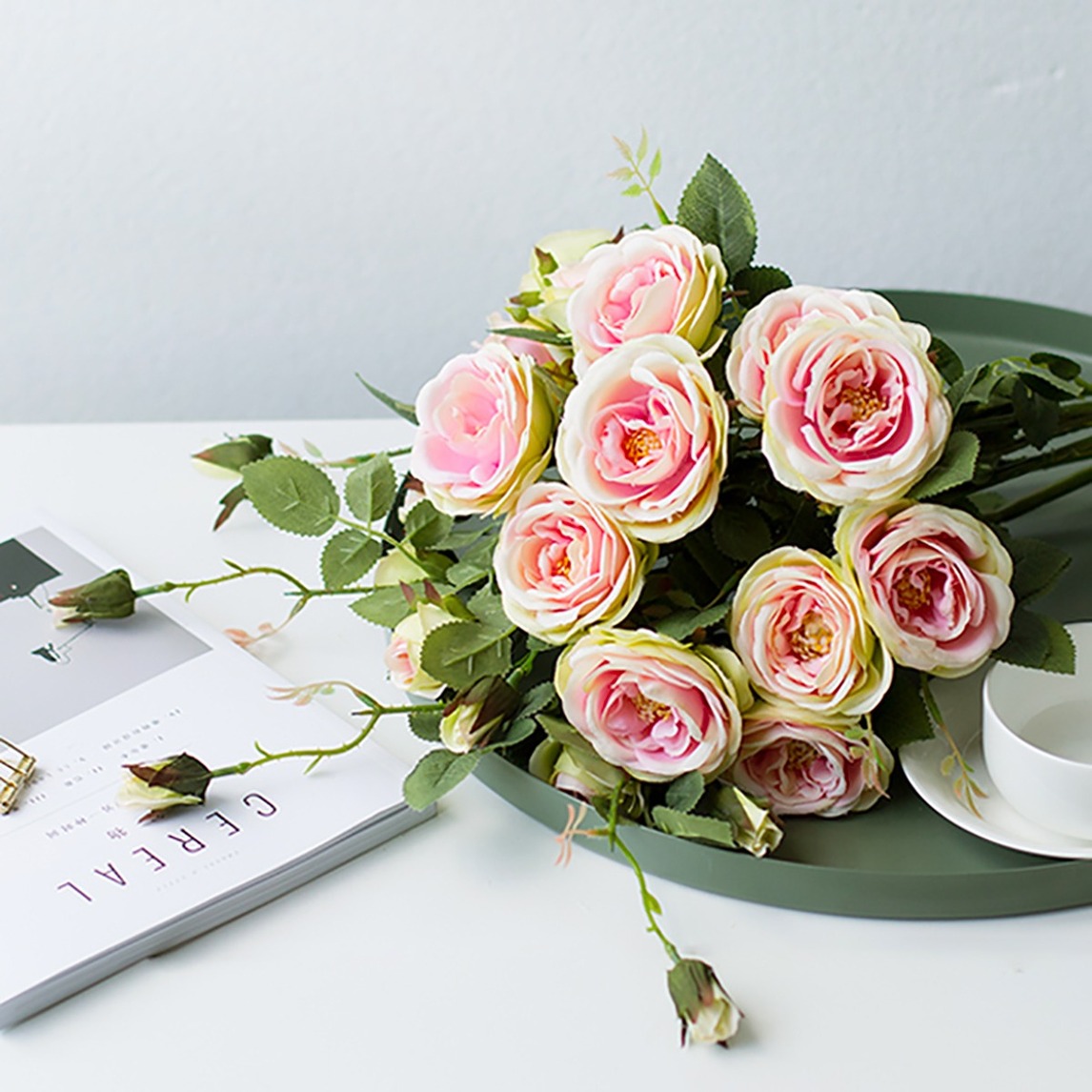 法式玫瑰花开,一片绚丽,看上去就像邻家女孩,热情明朗,花瓣微卷,粉粉的颜色,娇羞可人,是绝佳的居家装饰品。
