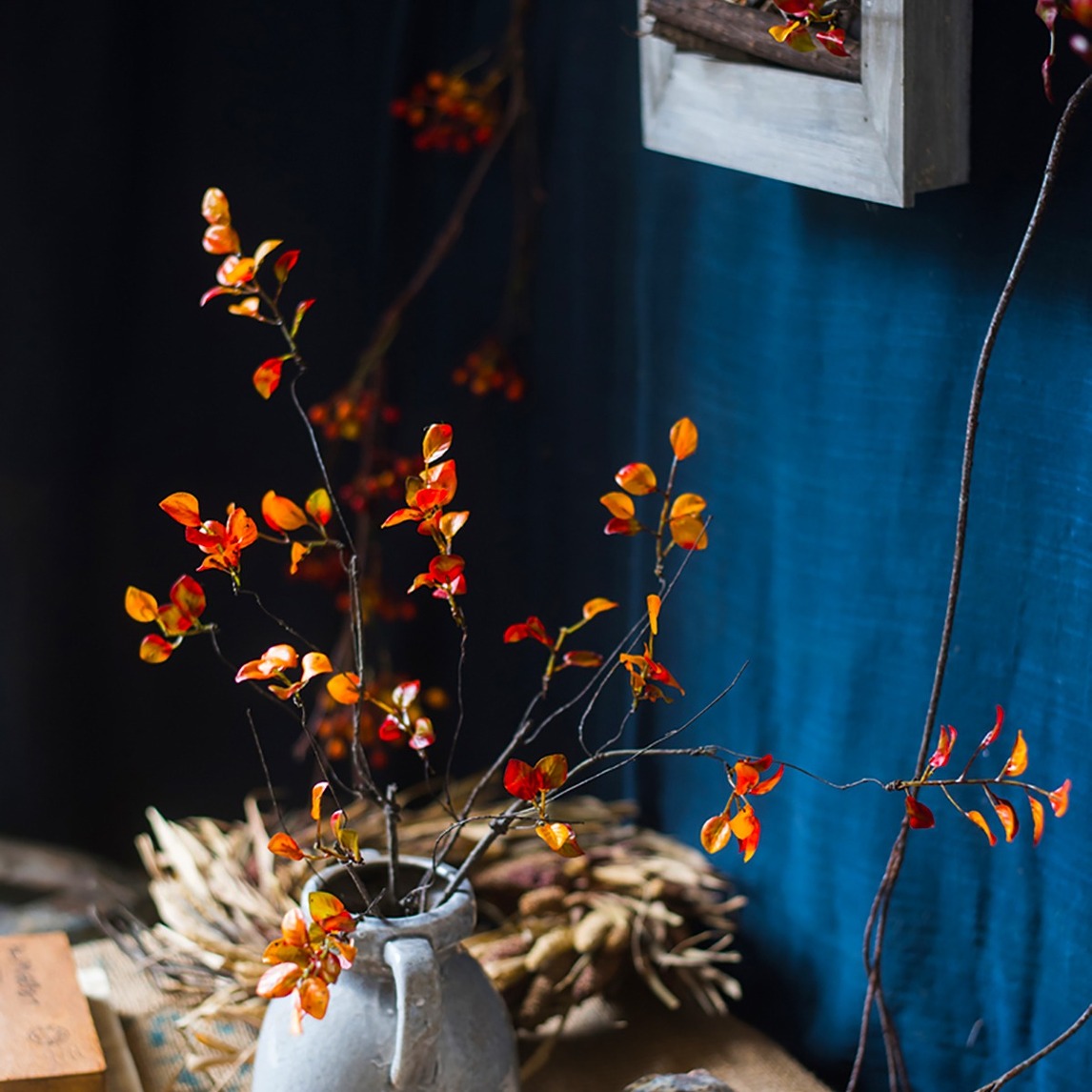 将书房布置得有禅意一些,工作和学习才会更静心凝神。几枝被秋色染红了的藤枝,插在双耳的陶瓷花器中,极具复古意境,也富有禅意。