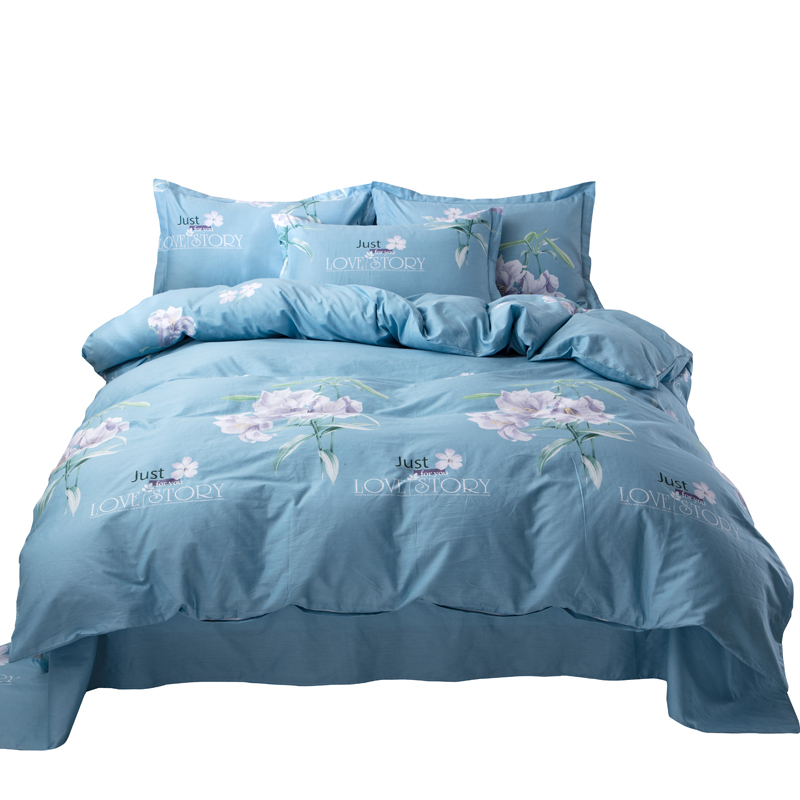 高雅印花设计,淡蓝色纯棉材质,四季可用。时尚大方,一如初见般美好。营造出简约清新的卧室氛围,引起极度舒适。