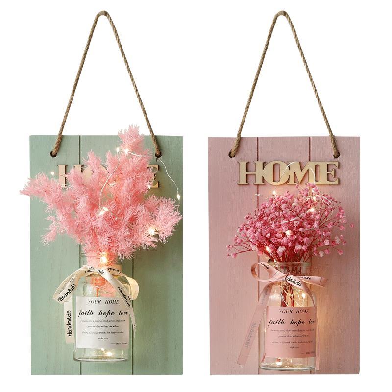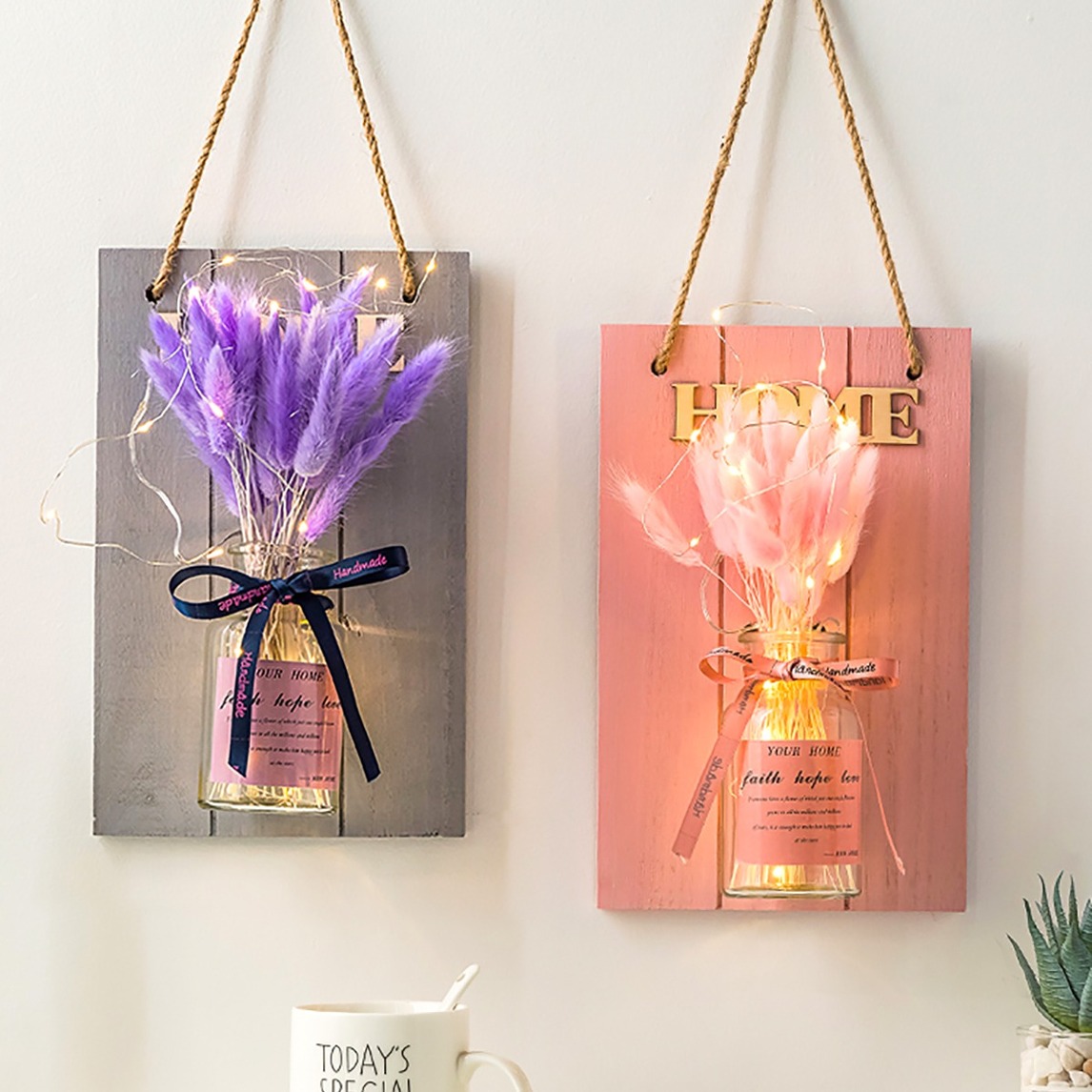 自己DIY一面墙,用玻璃瓶+木头+干花装饰,打造出萤火缭绕的感觉,利用点点星光制造浪漫,显得干花也如此俏丽生动,给书房带来温馨感。