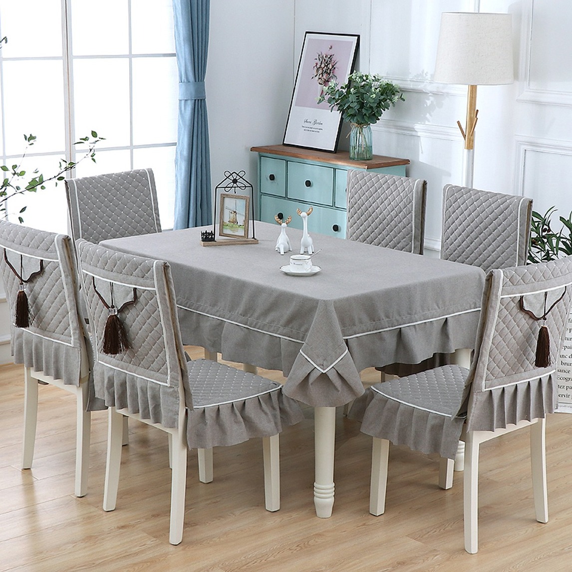 休闲清新的欧式田园风格餐厅,简洁的纯色亚麻餐桌布,配合轻奢简约的北欧相框以及摆件装饰,简简单单,却充满了生活仪式感,回归简洁的返璞归真生活,让我们更加享受哦。