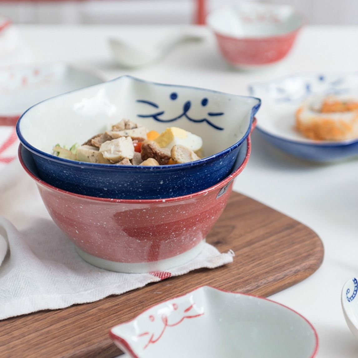 可爱的猫耳朵造型,手绘猫图案的面碗,大容量能装很多事物,耳朵造型还能当做倒流嘴,碗外是雪点设计深浅不一显生动与别致。