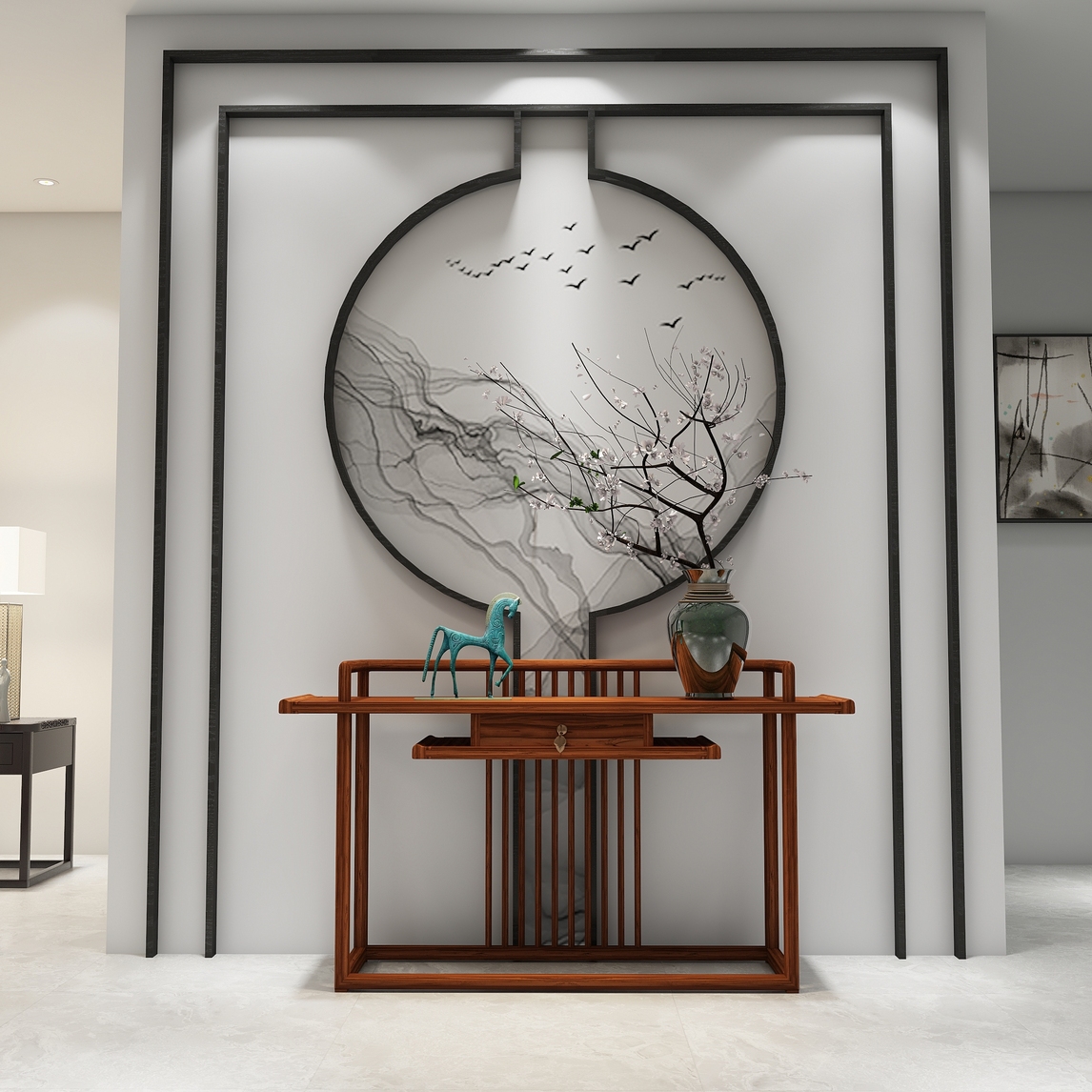 新中式是传统中国文化与现代时尚元素在时间长河里的邂逅,以内敛沉稳的传统文化为出发点,融入现代设计语言,为现代空间注入凝练唯美的中国古典情韵。