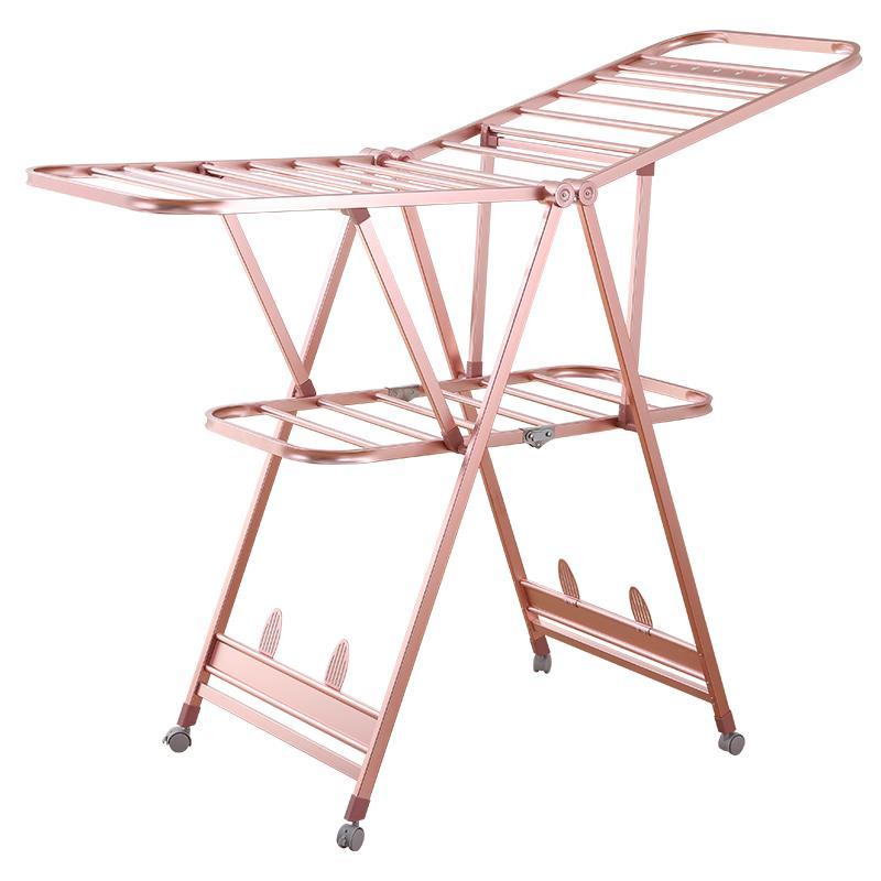 这种是折叠式的落地折叠衣架,对于那些户型比较小的房子大家可能比较喜欢折叠式的,形态蝴蝶型(又称翼型)、适用于房间、阳台和室外。这样的落地晾衣架还是非常实用的。