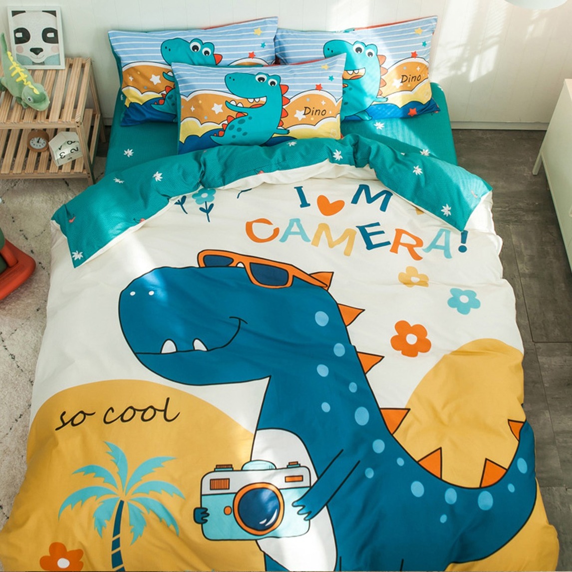 小朋友都比较喜欢可爱的东西,睡觉的被子也不例外,可以在儿童房铺上这种卡通四件套,上面的图案挺有趣,让他们快乐成长。