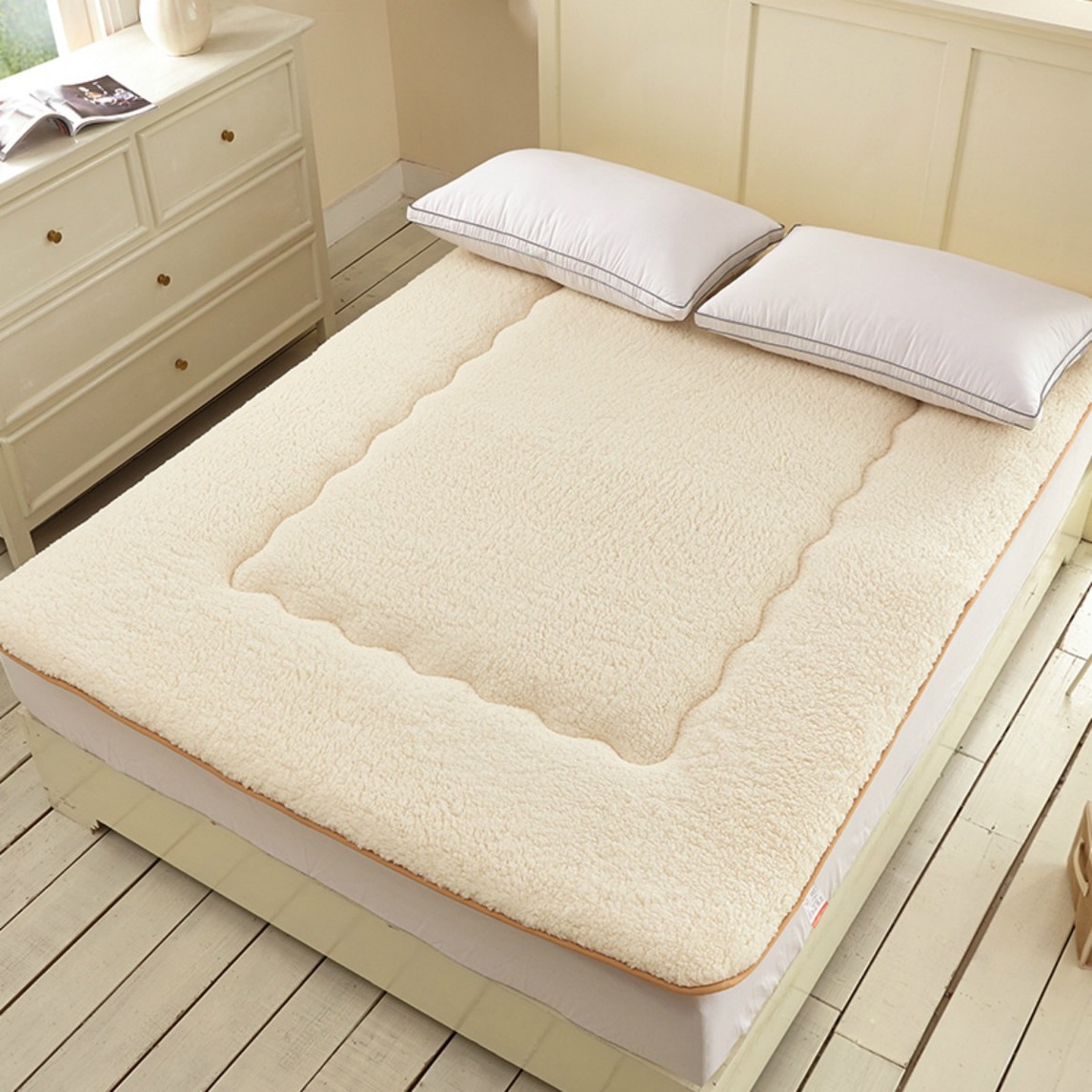 浅米色的美式卧室干净整洁,整个空间都宁静,风格上也百搭,床上再搭配上羊羔绒床垫,又暖又软,毛绒的质感让浅白色的空间变得生动起来!