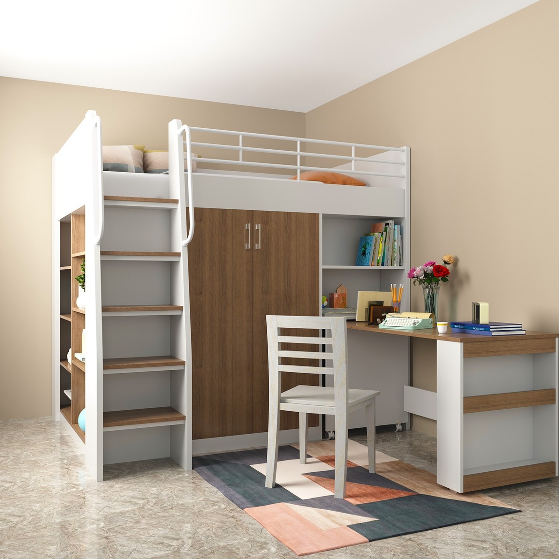 房间虽小也可以功能齐全,利用柜体的收纳优势做成上床下柜的样式,睡眠区、学习区、收纳区域一个不落,分区科学且有条不紊,邀请小伙伴来家里玩也倍儿有面子。