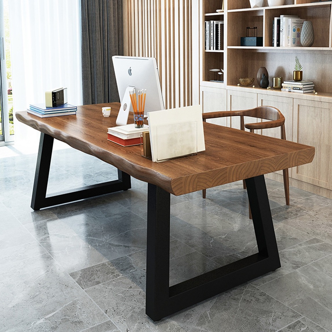 简约设计的实木电脑桌,采用自然实木桌面,纹理清晰美观,带有原木的清香,铁艺桌腿,结构结实耐用,承重力强。