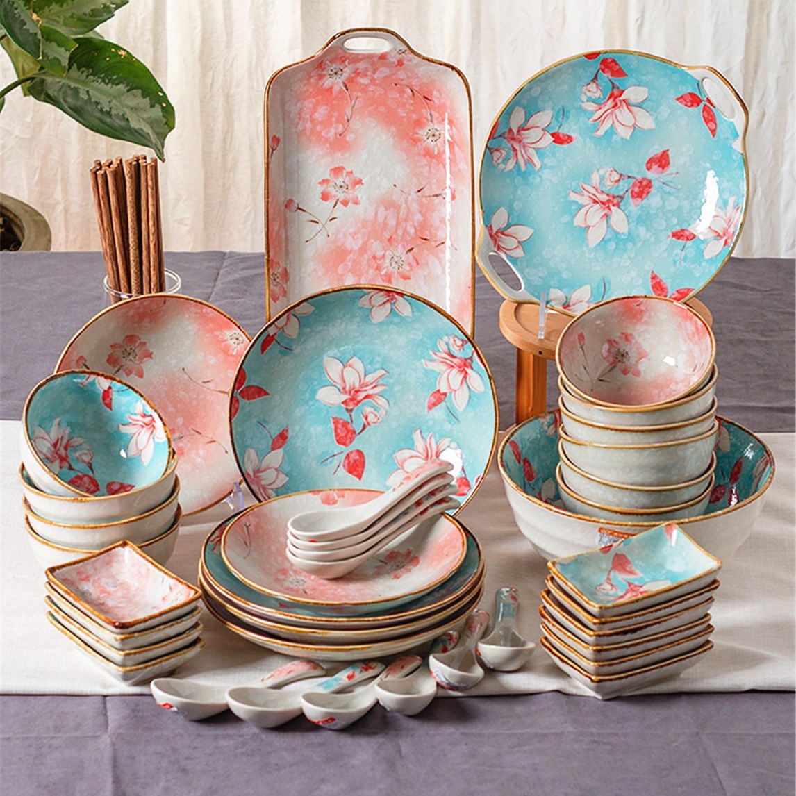 日式风格的餐具,颜值还是非常高的,小清新的配色与精美的花纹,看起来也是格外漂亮,搭配釉下彩工艺,使得餐具的质感也更出色,除了家里使用,日常送礼也很不错。