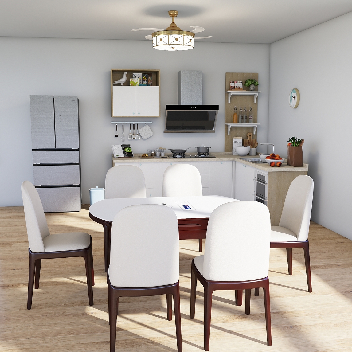 打破了厨房与餐厅的界限之后,整个厨房都会显得敞亮开阔,秋色的立式橱柜靠着白色的墙面显得大气又简约,与木质地板显得极为相称。白色桌面的转角设计巧妙地划分出了厨房的空间,但让空间看起来依旧敞亮,银灰色的冰...展开