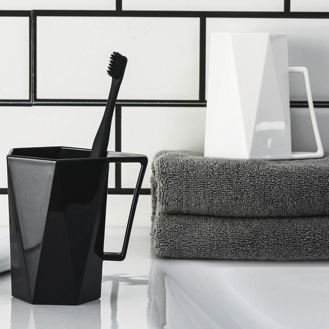 这款创意潮流漱口杯采用的是几何手柄设计,简约造型,防滑防滚,同时方便拿取。杯口边缘处理光滑,使用不易伤嘴,底部凹槽设计,减缓杯子震动,放置更稳固。