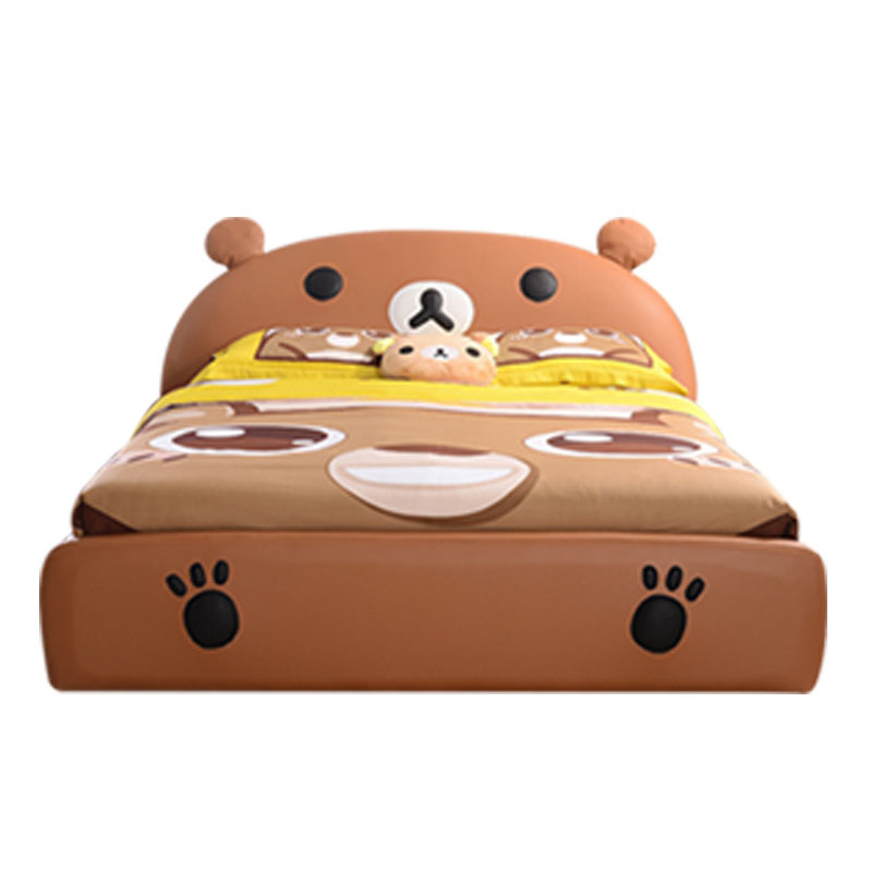这款产品的设计元素意卡通布朗熊为主,将布朗熊和床品进行结合,童趣十足。床品的皮质主要选用环保皮,内部填充厚实的海绵,框架造字那个稳固笔直。
