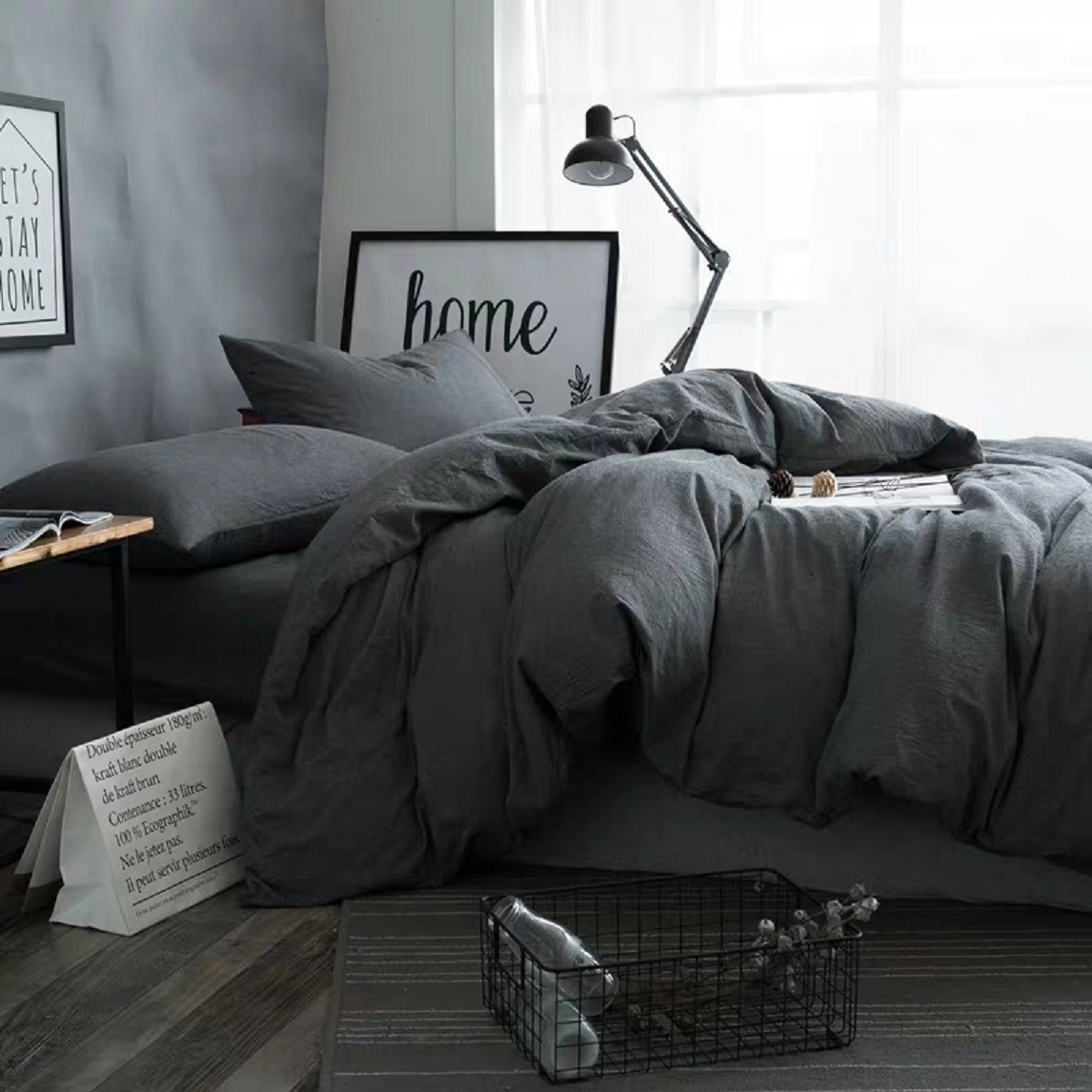 这是日式无印风,深色的床品,不仅不会显得忧郁深沉,反而更加的简约舒适,是非常柔软亲肤的质料,缩水率低,不会起球。