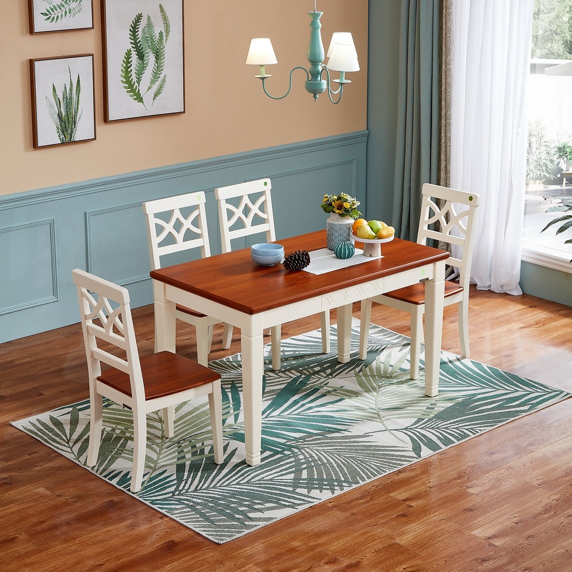 一提起地中海风格,便能够马上想到白墙绿瓦、沙滩海浪。精致的镂空椅背给予我们更多想象空间,红樱桃木色彰显了淳朴自然。小小的餐厅空间,也无时无刻不在呈现着热情与浪漫~