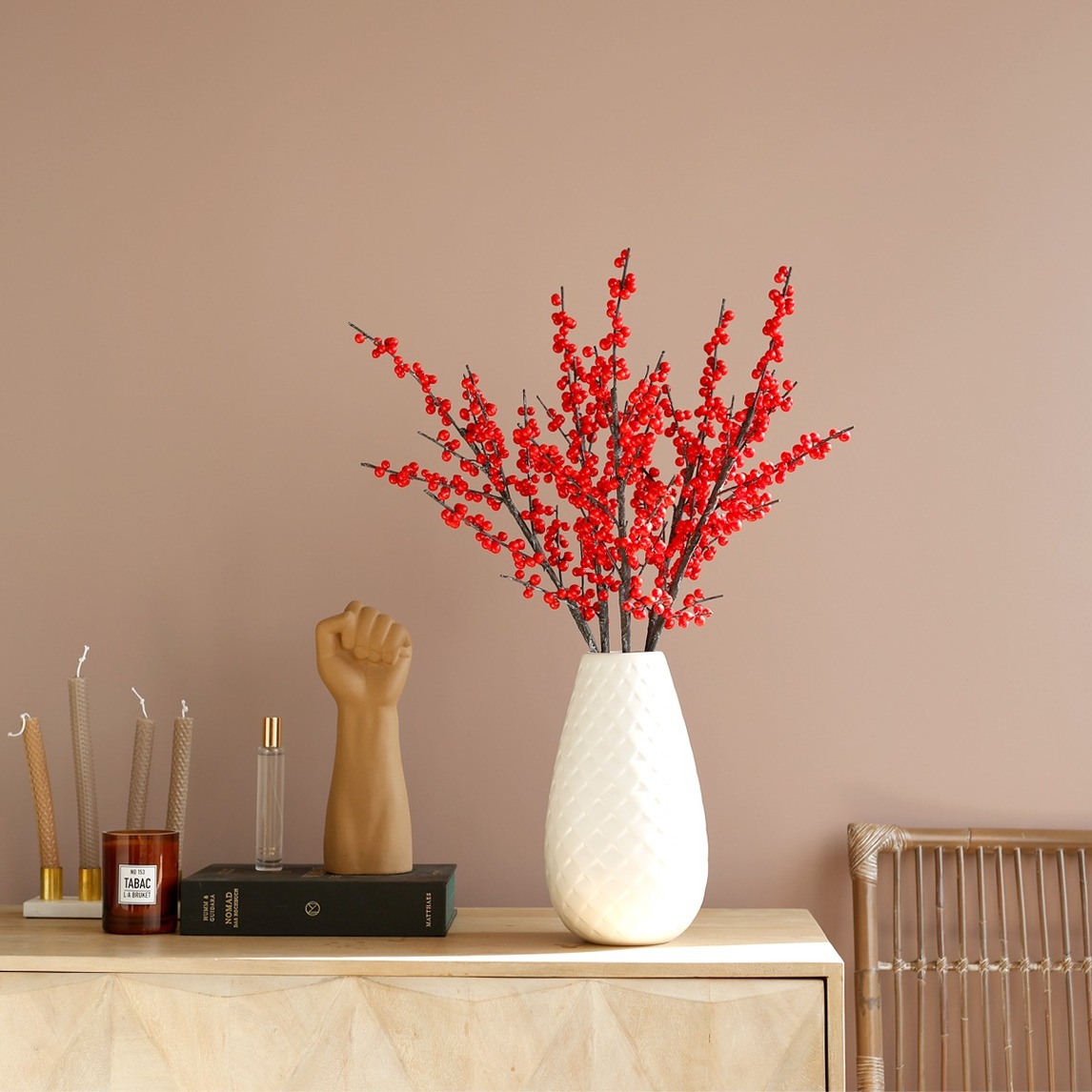 玄关空落落的不知道怎么布置?安排!仿真冬青果花艺,不仅适合秋冬,更适合营造新春的气氛;富有设计感的拳头花瓶一样适合作家居摆件饰品,加上复古欧式蜡烛台,小空间一下子充满了格调呢!