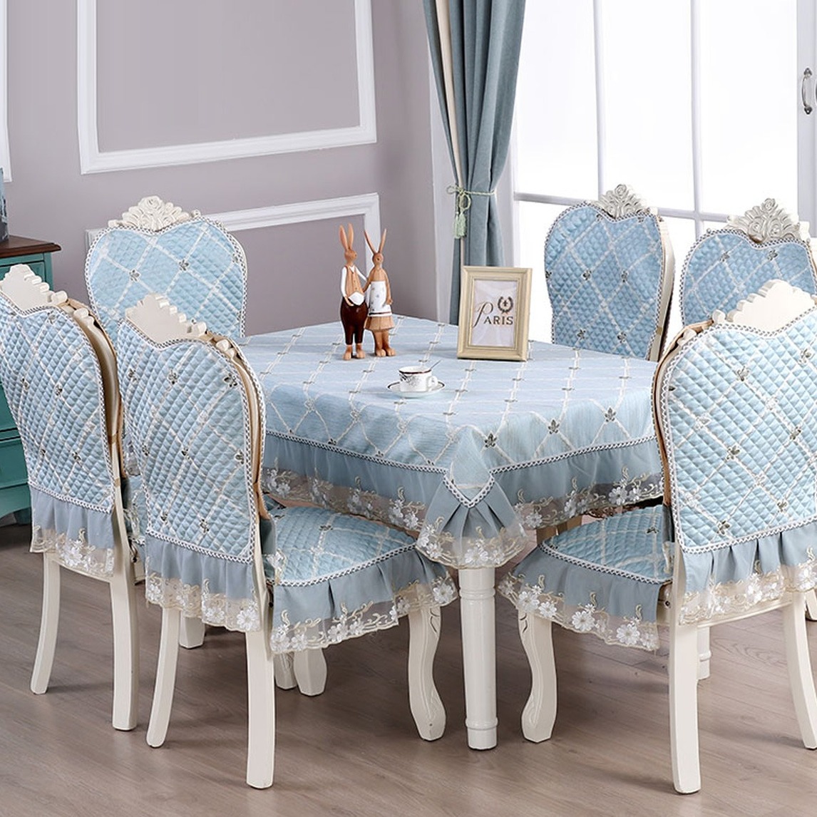 精密提花工艺设计,层次丰富细腻,丰润亮泽的吊珠垂边设计,华贵雅,这样的桌布一眼看上去虽然能够让人获得美感,但时间一长就有可能出现“审美疲劳”,而且还是整套的,很显典雅哦。