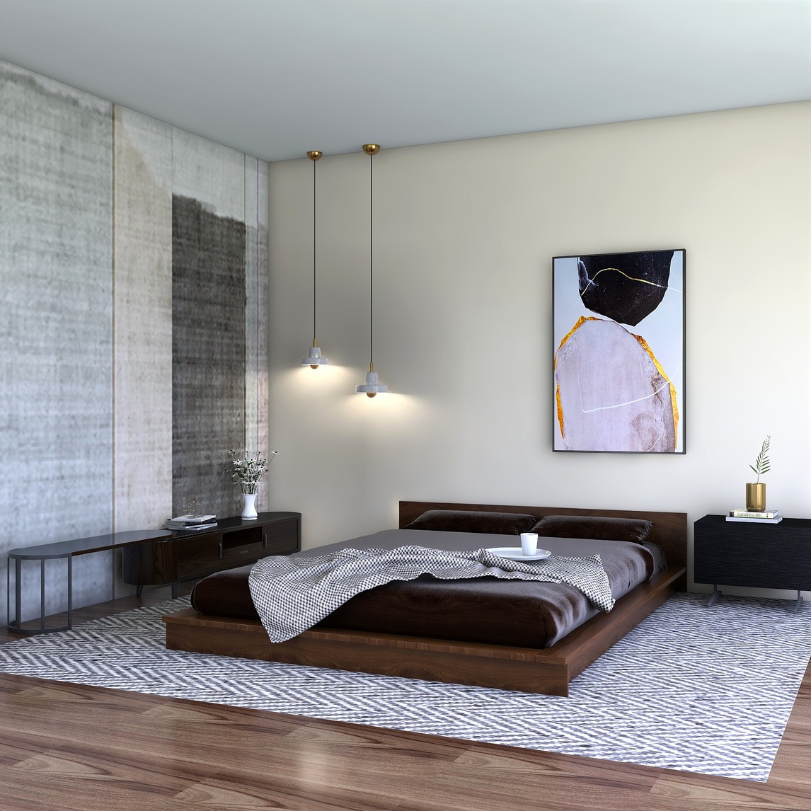 选用深色的黑胡桃木榻榻米作为卧室的主体,搭配一款浅色胡桃木地板以及柜体进行陪衬,色彩协调富层次感,为了缓和这一沉闷感,特地使用了一款浅色抽象地毯来铺垫,与墙面的设计相呼应,一明一暗的色彩搭配,让整个空...展开