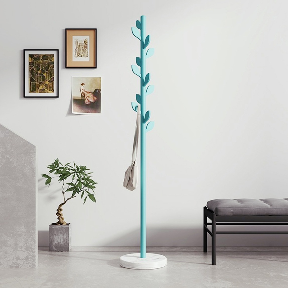 玄关处的装饰切忌过多家具堆积,其实玄关处核心内容只需要一个衣帽架和换鞋凳,选用一个浓浓设计感的衣帽架,就可以轻松突出北欧风啦。
