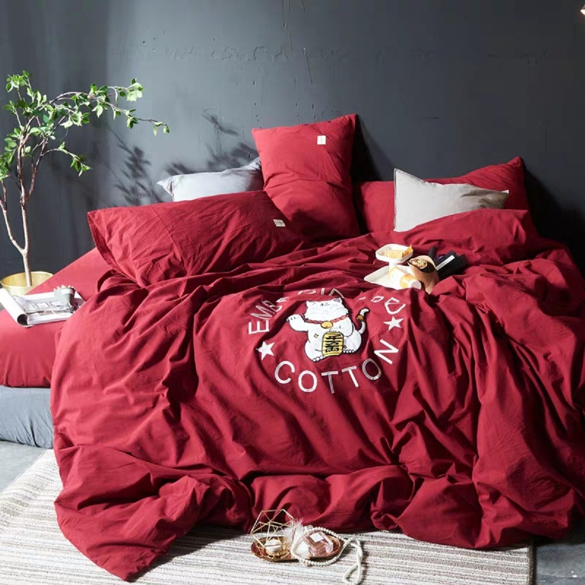 新的一年应该红红火火起来啦!近几年国潮风渐渐兴起,这样的国潮复古大红色的四件套,是特别耐看的,父母用、夫妻用、孩子用,都足够满足了。
