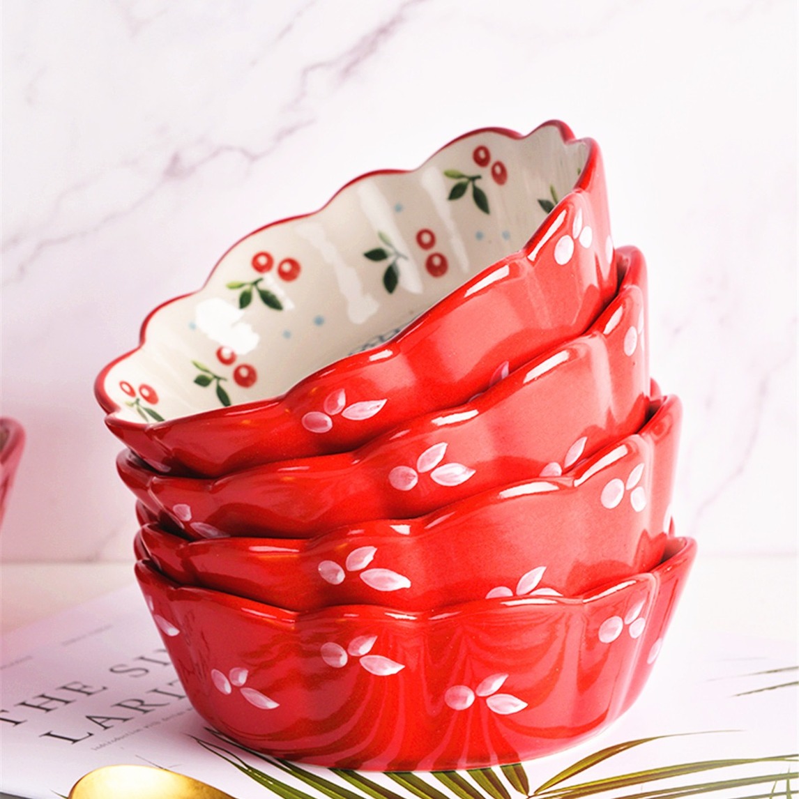 日式风格的餐具还挺漂亮的,手绘的樱桃图案,外加釉下彩工艺,使得餐具兼具颜值与质感,喜庆的红色,看起来一点也不花哨。