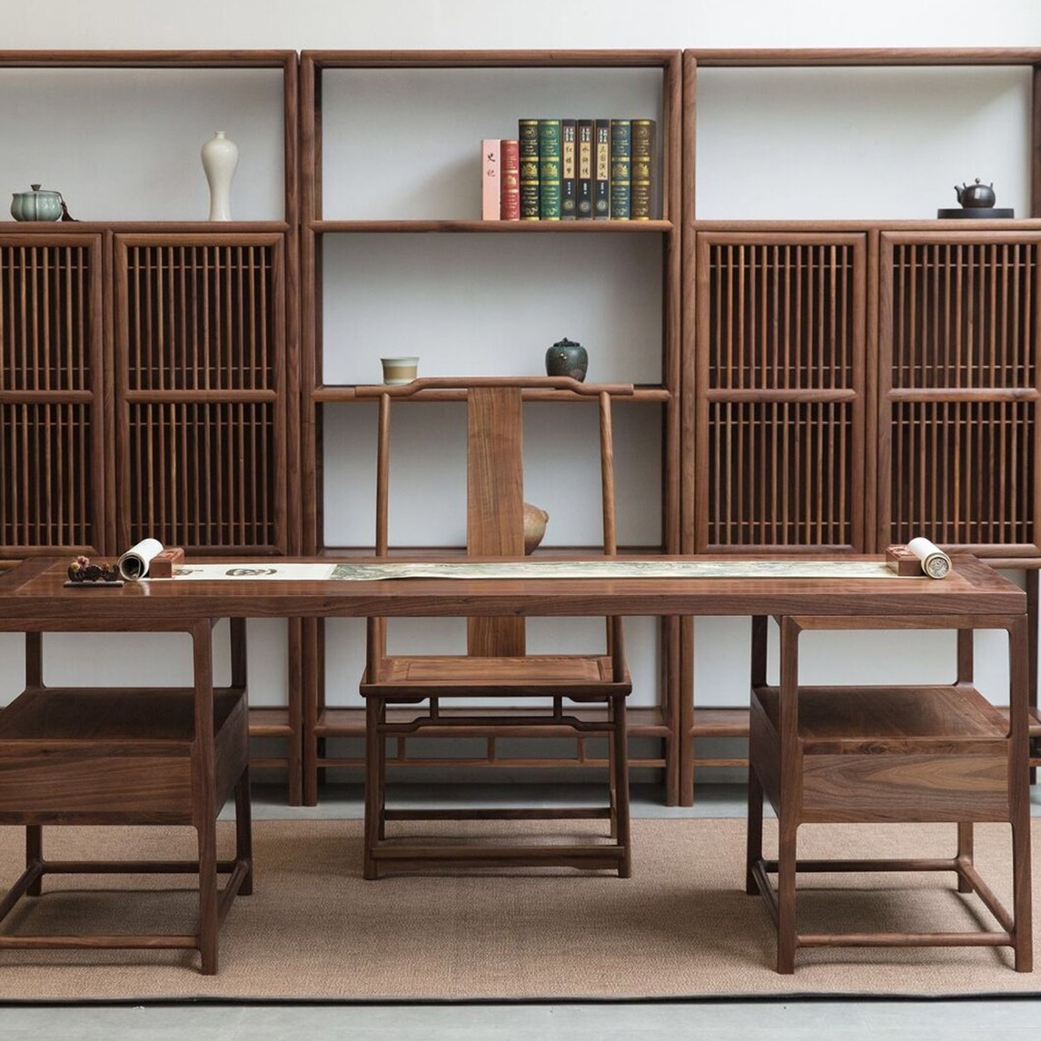 中式风的书房空间总能给人一种很禅意很安静的空间氛围,很有质感的木质家具让书房更加有了书香与文人气息。