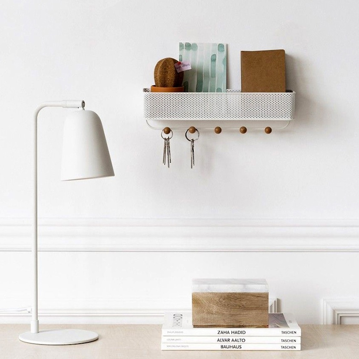 在我们书桌上方的墙面上,可以巧妙的利用一下,比如装一个这种置物架,颜值外观挺时尚,不仅有收纳作用,还能起到装饰效果。