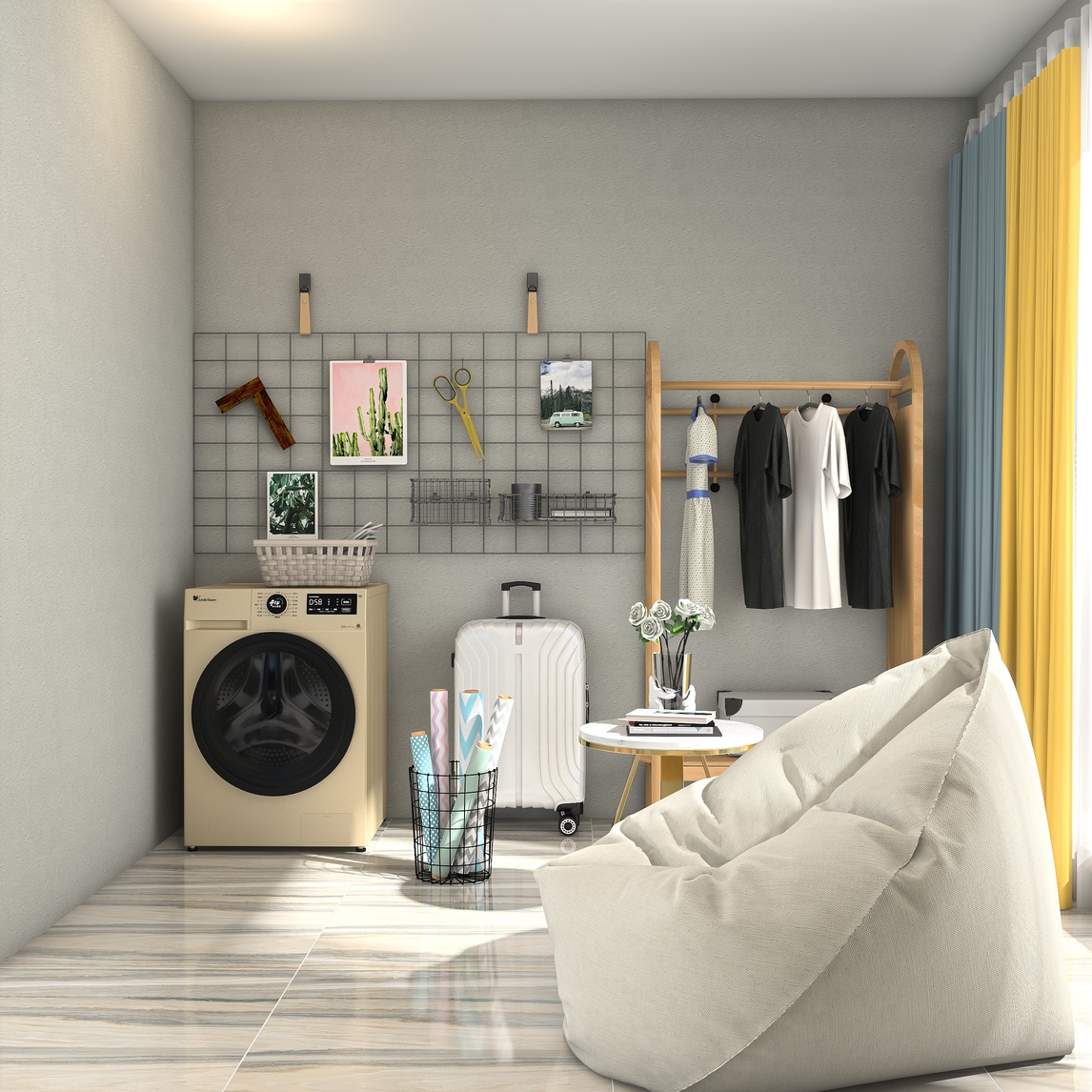 细节是生活无法缺失的重要部分, 简单的储物柜配上小天鹅洗衣机,自动变频,静音,为现代风格的阳台增加了色彩。