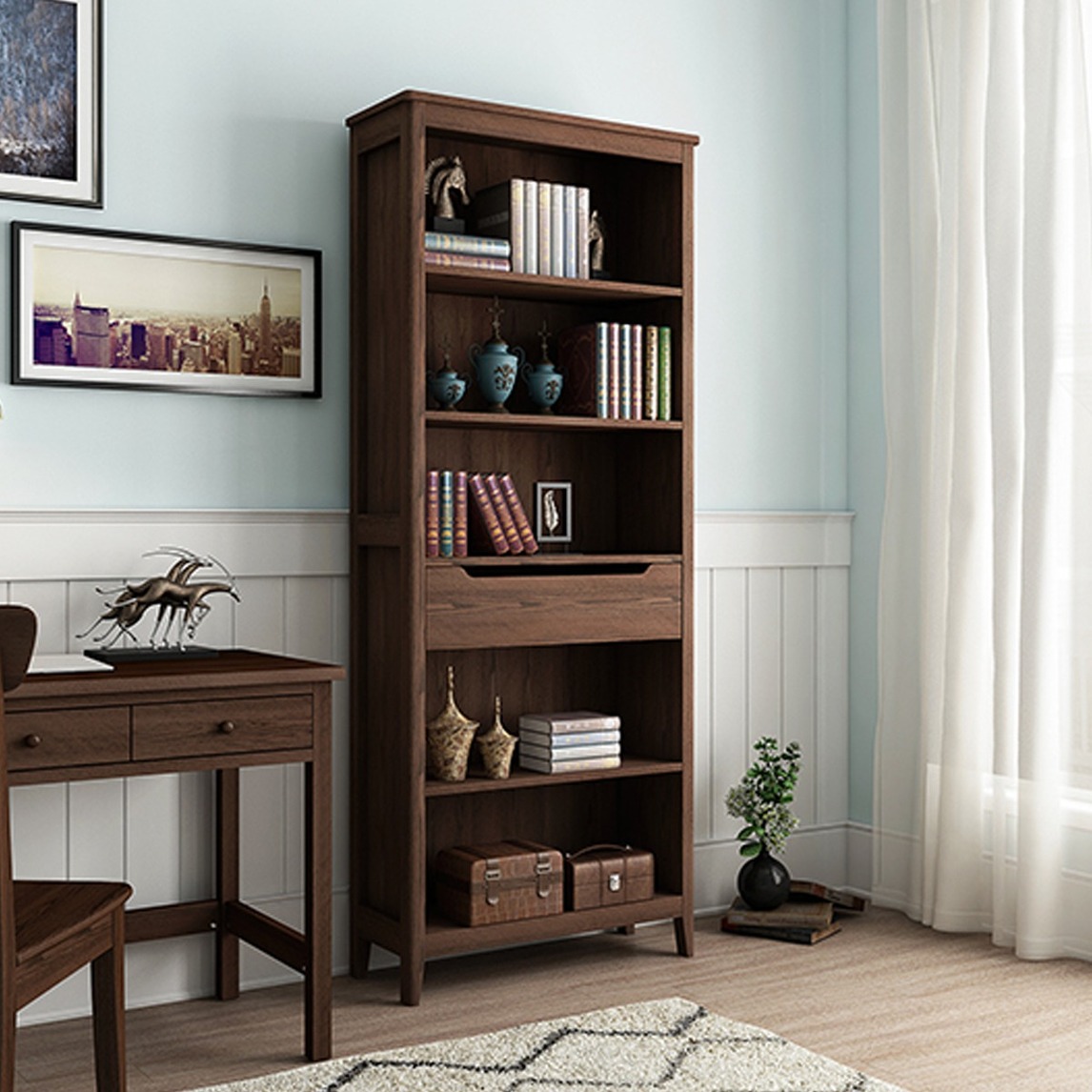 书柜采用组合式大容量储物格,储物不用愁,还配有抽屉式储存格便于分类存储。加厚的柜腿结实厚重,平稳承托书柜不易晃动。