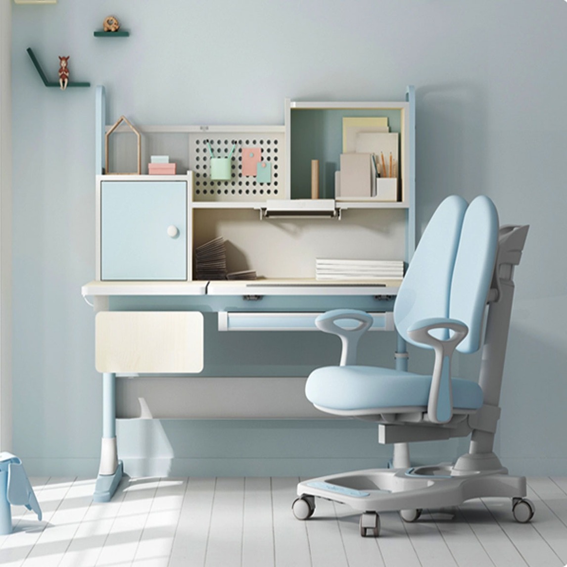 男孩房一般以蓝色调为主,年轻活力的空间,跟孩子朝气的年纪相互搭配很合适。在床与落地窗之间,靠窗摆放一个书桌,适合较为宽松的儿童房。