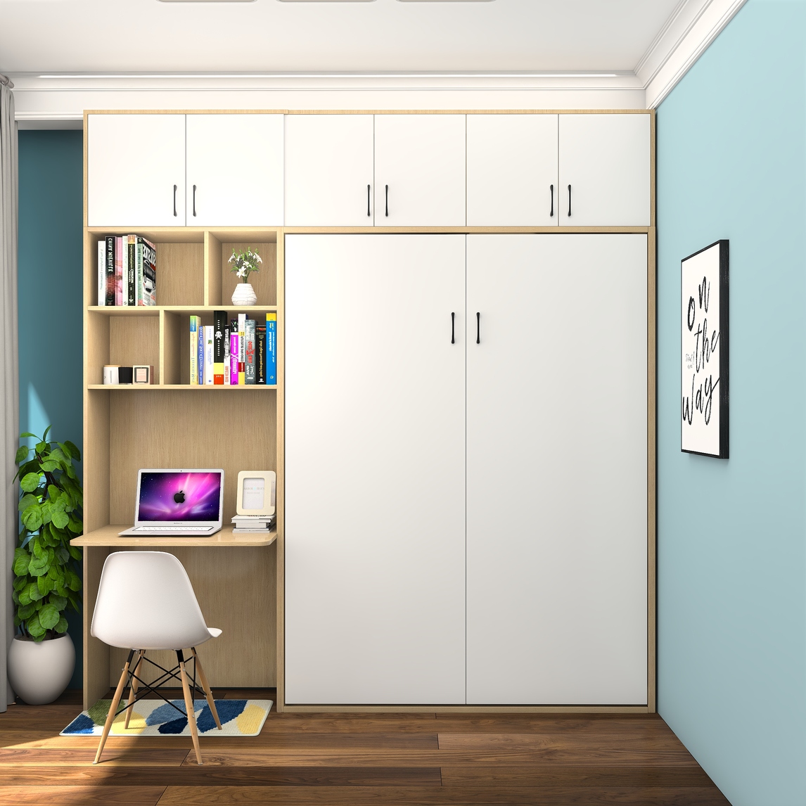 简单的浅色柜子,配上蓝绿色的墙面,简单清爽,搭配折叠隐形床,打开后变卧室,收起后既是活动空间,极大的提高了空间利用率,享受生活,自然要随心所欲
